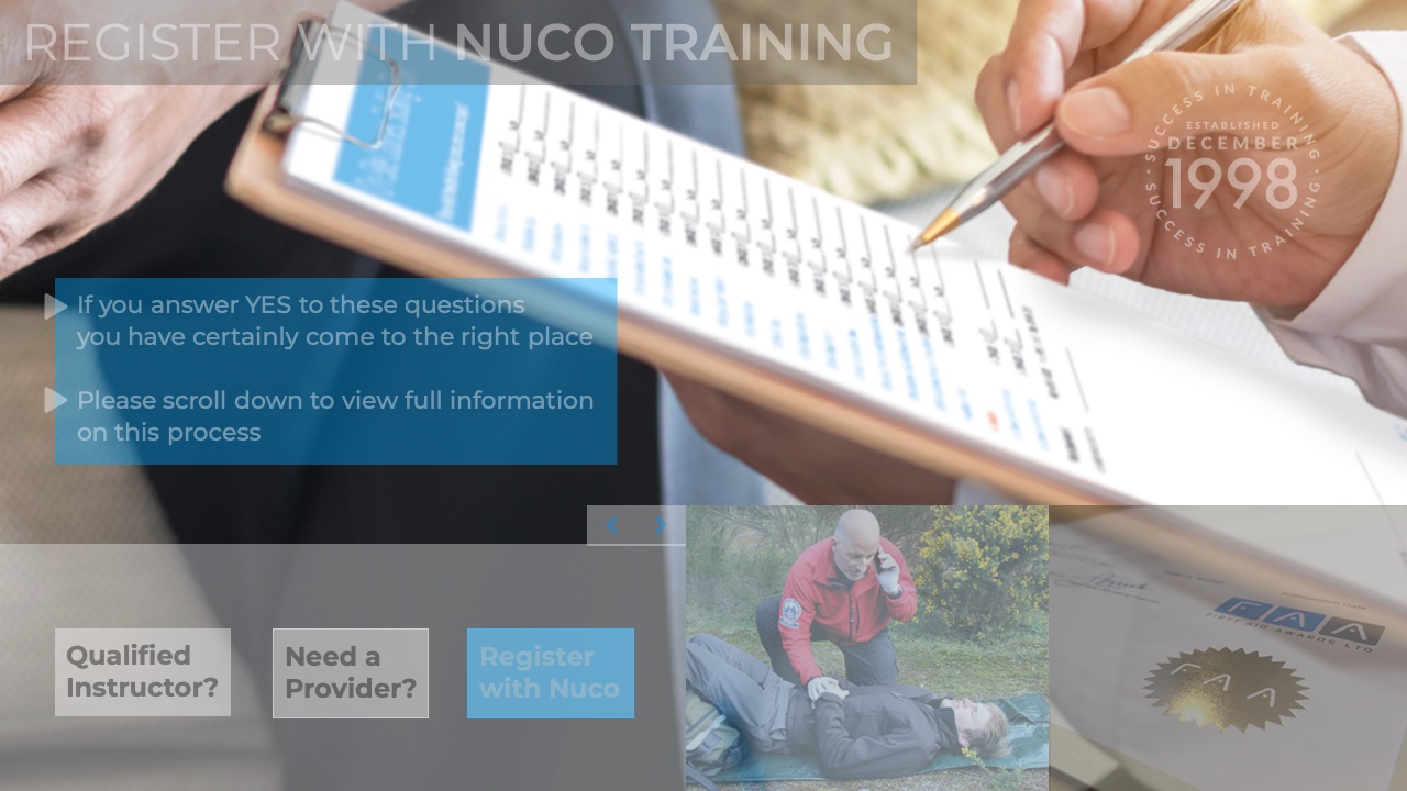 If you are already qualified to teach courses in relation to First Aid, Health & Safety, Food Safety, Safeguarding or Mental Health and you hold the appropriate qualifications and experience required, you are able to transfer to Nuco Training with immediate effect to benefit from our services. Including having access to your own unique online Instructor Area, where you can manage your course administration 24/7, advertise courses and have access to a wealth of downloadable course literature.